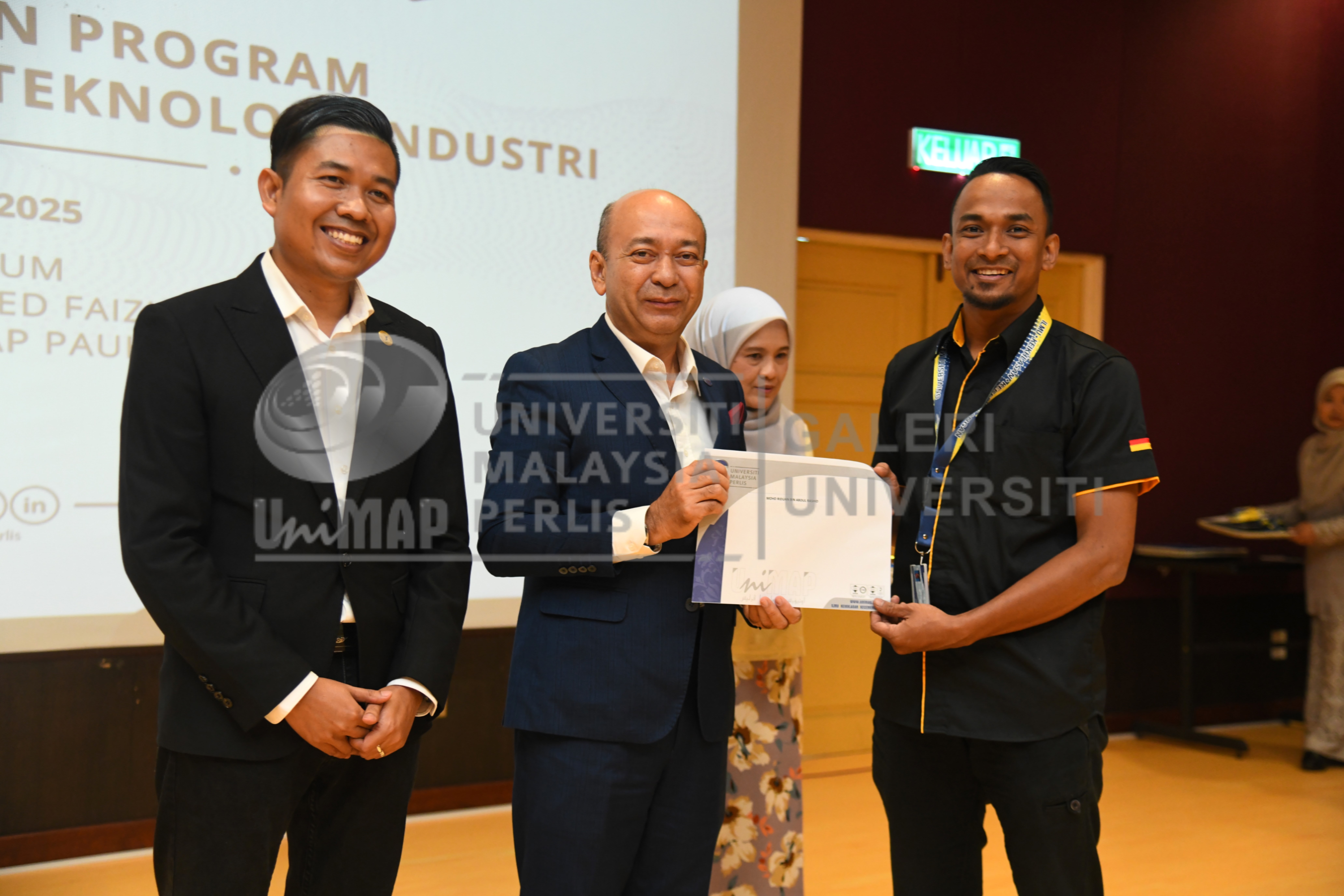 Abstract: Prof. Dato' Ts. Dr. Zaliman Sauli, Naib Canselor Universiti Malaysia Perlis (UniMAP) menyerahkan surat tawaran Program Diploma Profesional Teknologi Industri kepada Encik Mohd Riduan Bin Abdul Rashid yang merupakan salah seorang pelajar daripada Continental Tyre AS Malaysia Sdn. Bhd. sambil disaksikan oleh Encik Noor Izwan Ismail, Plant Manager Continental Tyre AS Malaysia Sdn. Bhd. yang bertempat di Auditorium Perpustakaan Tuanku Syed Faizuddin Putra, Kampus Alam UniMAP, Pauh Putra.