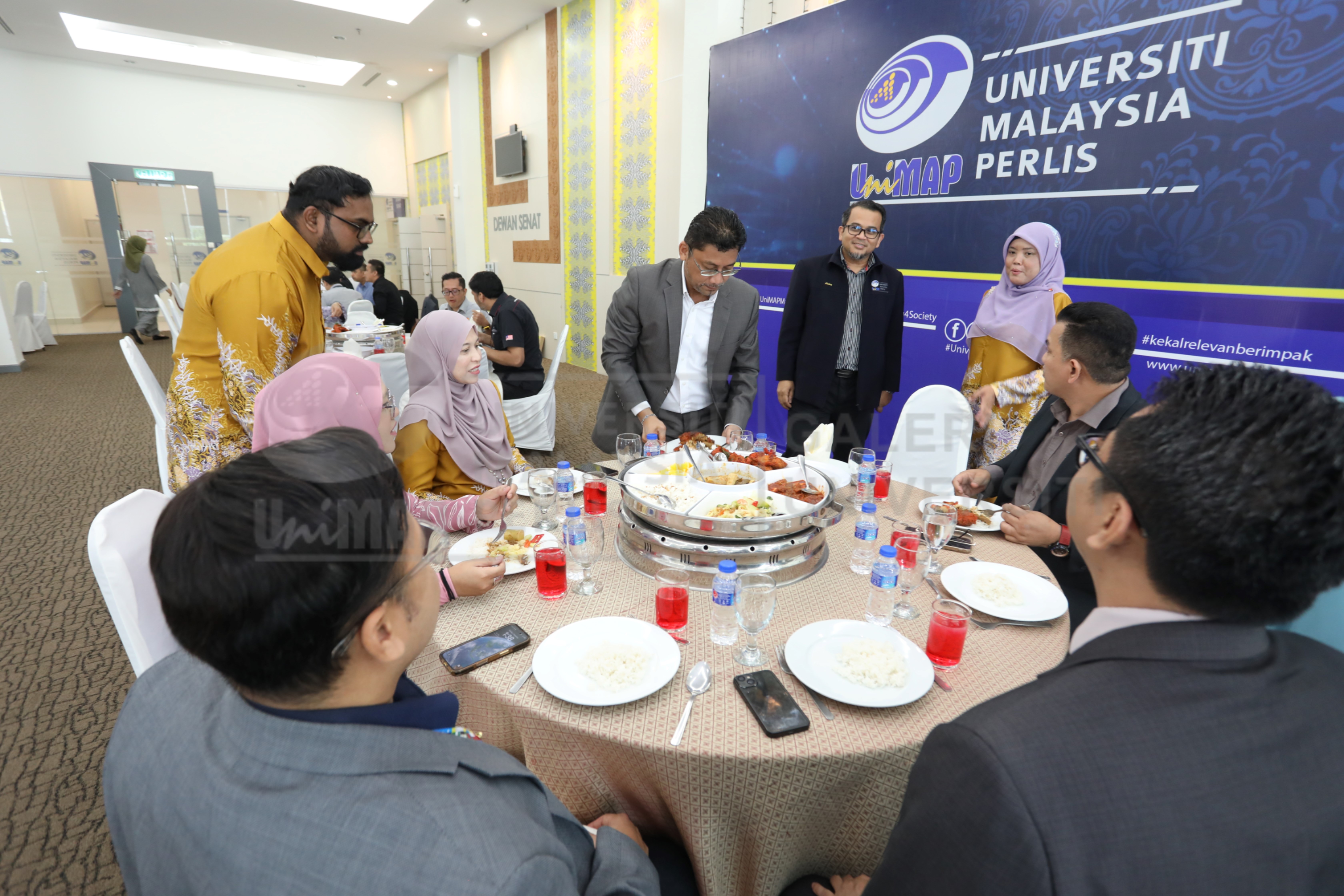 Abstract: Prof. Ir. Dr. Mohd Shukry Abdul Majid. Timbalan Naib Canselor (Akademik & Antarabangsa) tiba di meja makan VVIP untuk menjamu selera di Canselori Tuanku Syed Sirajuddin, Kampus Alam UniMAP, Pauh Putra sempena Mesyuarat Jawatankuasa Pengarah Antarabangsa (JKPA) Universiti Awam Malaysia Ke-35 Bil. 2/2025 pada 2 September 2025