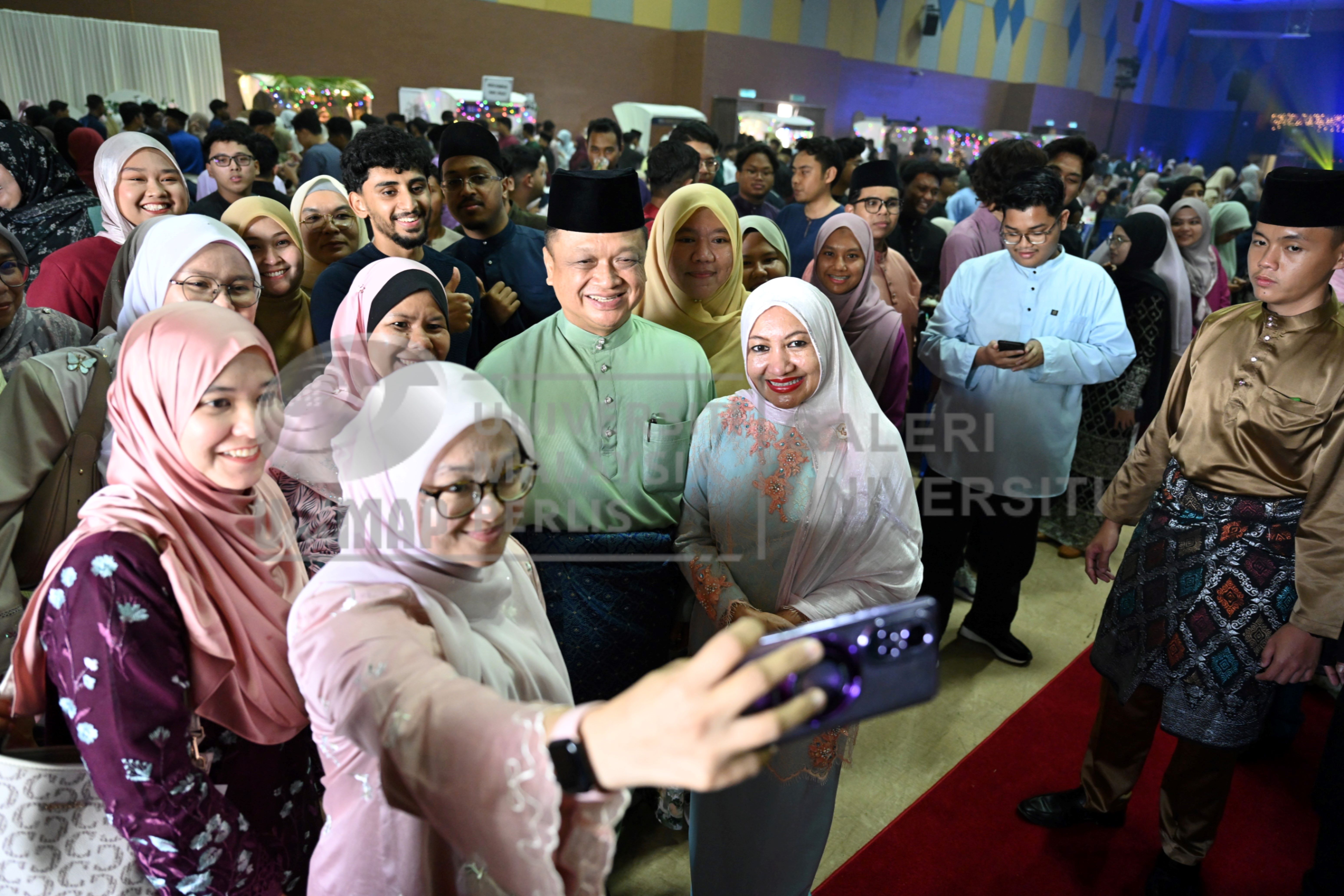 Abstract: Warga UniMAP tidak melepaskan peluang berswafoto bersama DYTM Tuanku Syed Faizuddin Putra Ibni Tuanku Syed Sirajuddin Jamalullil, Canselor UniMAP dan DYTM Tuanku Dr. Hajah Lailatul Shahreen Akashah Khalil semasa Majlis Riang Ria Raya@UniMAP 2025 di Dewan Ilmu, UniMAP.