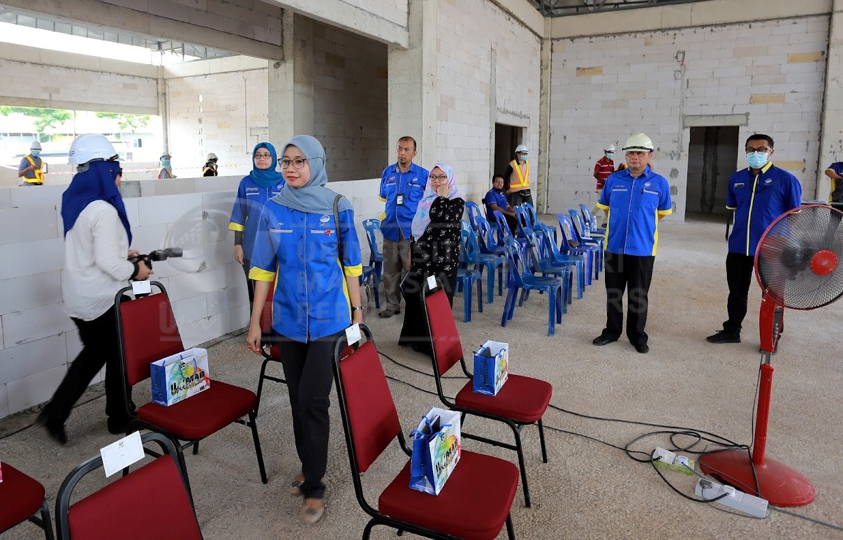 Abstract: Para petugas yang turut membantu persiapan lawatan Tapak Projek Pembinaan Pusat Pengajian Kejuruteraan Bahan dan Makmal UniMAP, Kampus Alam UniMAP, Pauh Putra