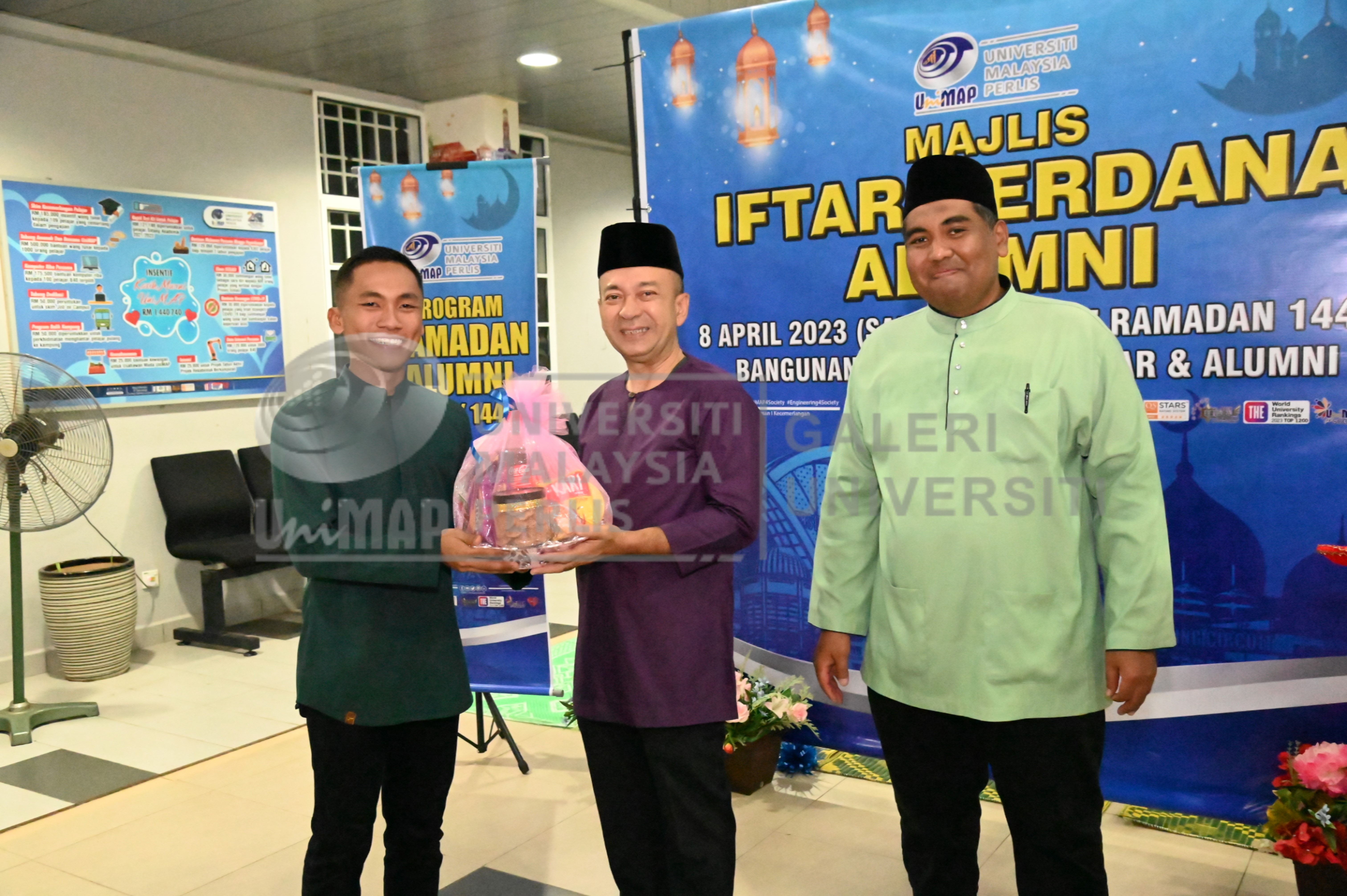 | photo2025062338.jpg | Prof. Dato’ Ts. Dr. Zaliman Sauli Naib Canselor Universiti Malaysia Perlis (UniMAP) meyampaikan cenderahati kepada Abdul Khalim Al Azizi Bin Syahril, Mantan Yang Di-Pertua Majlis Perwakilan Pelajar (MPP) Universiti Malaysia Perlis (UniMAP) sesi 2020/2021 di Majlis Iftar Perdana Alumni UniMAP 2023 bertempat di Ruang Legar Bangunan Jabatan Hal Ehwal Pelajar dan Alumni, UniMAP pada 8 April 2023. | 2.67 MB | JPEG | View/Open |