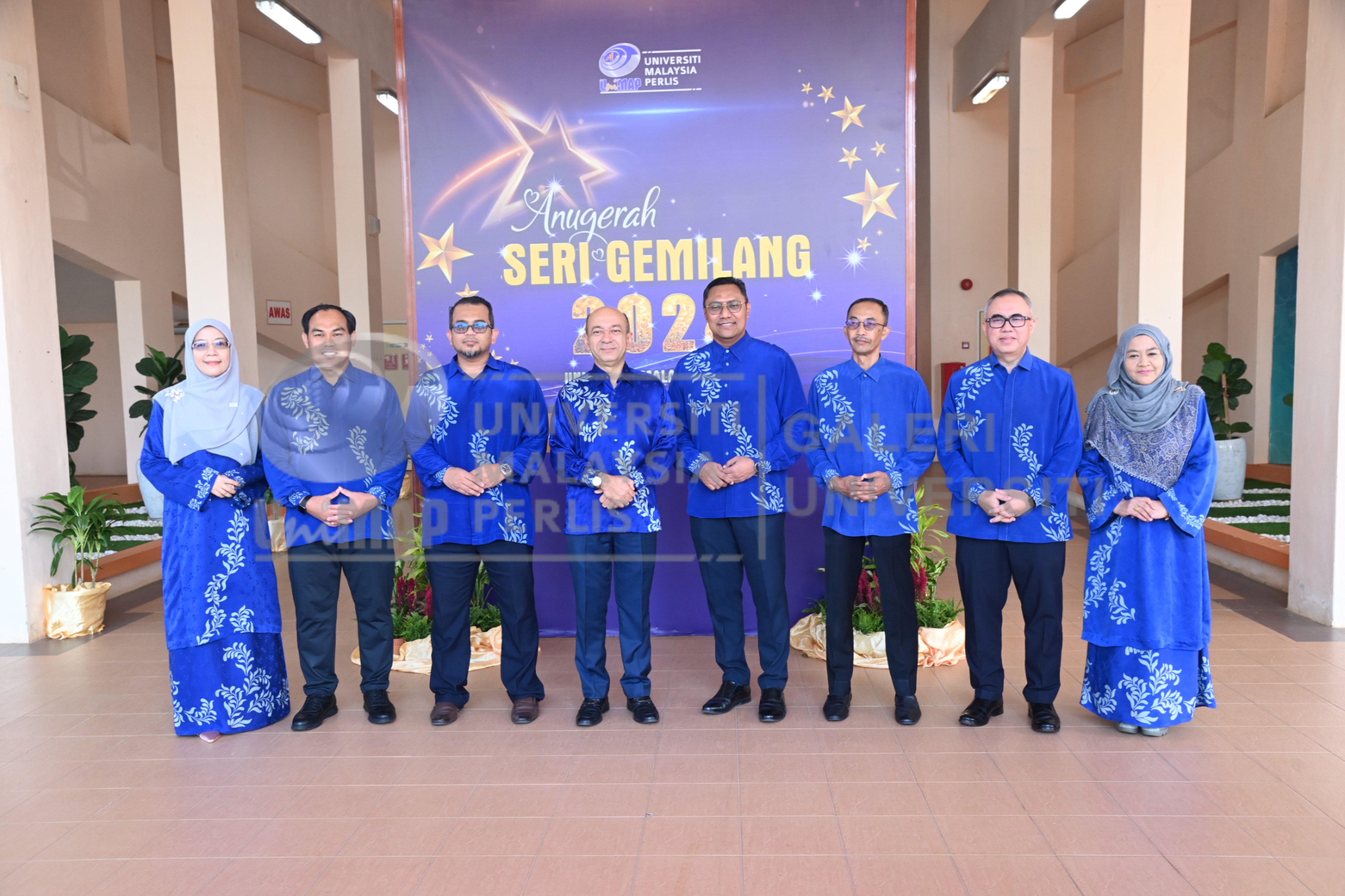 Abstract: Barisan pengurusan tertinggi UniMAP yang hadir ke Majlis Anugerah Kecemerlangan Penyelidikan, Anugerah Akademik, Anugerah Pentadbir dan Anugerah Perkhidmatan Lama 2024 pada 22 April 2025 di Dewan Kecemerlangan, Kompleks Dewan Kuliah, Kampus Alam UniMAP.