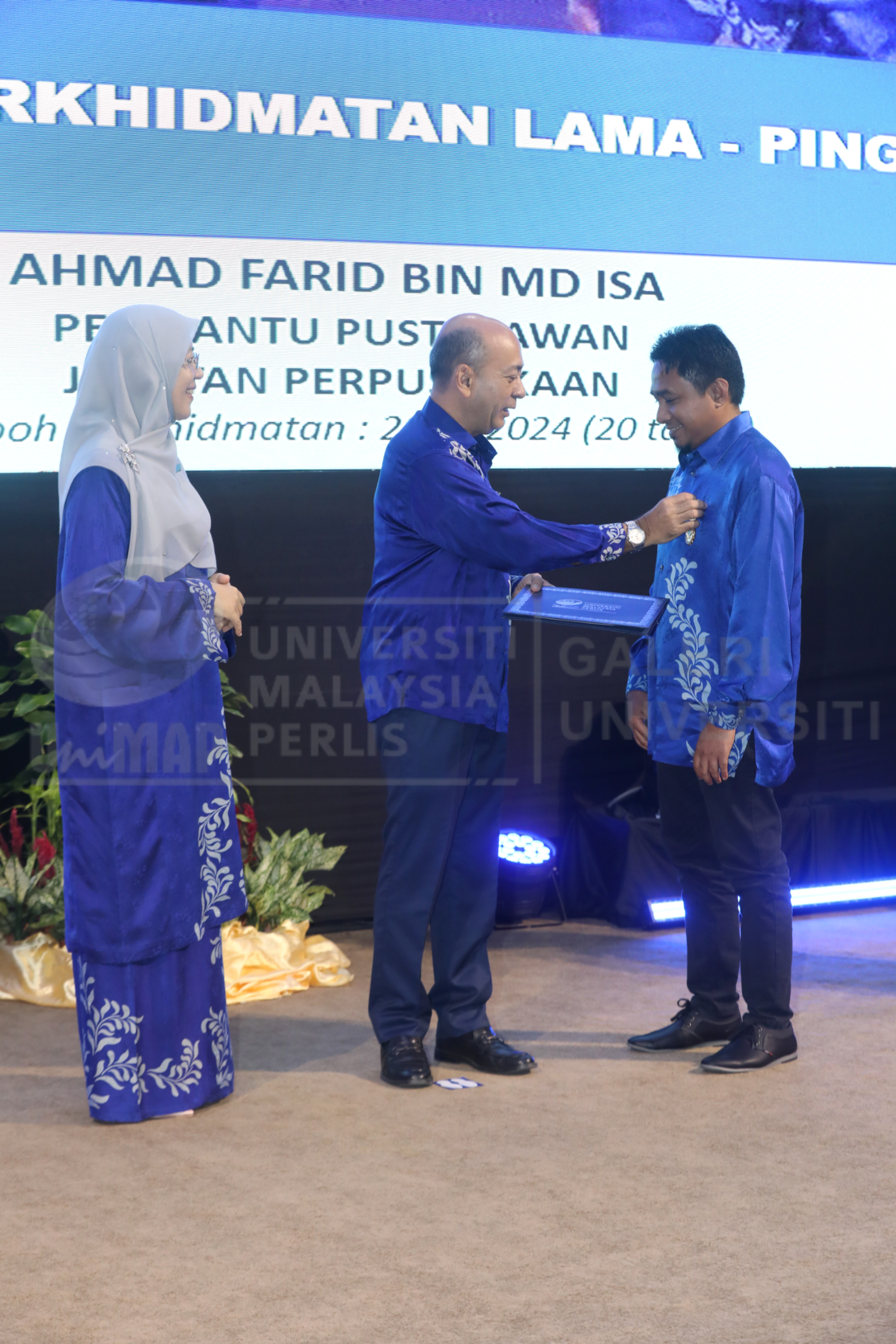 Abstract: Encik Ahmad Farid Bin Md Isa, Jabatan Perpustakaan menerima Pingat Jasa Bakti bagi Anugerah Perkhidmatan Lama 2024 yang disampaikan oleh YBhg. Dato' Prof. Ts. Dr. Zaliman Sauli, Naib Canselor UniMAP pada Majlis Anugerah Seri Gemilang 2024 : Anugerah Kecemerlangan Penyelidikan, Anugerah Akademik, Anugerah Pentadbir dan Anugerah Perkhidmatan Lama 2024 yang berlangsung pada 22 April 2025 di Dewan Kecemerlangan, Kompleks Dewan Kuliah, Kampus Alam UniMAP.